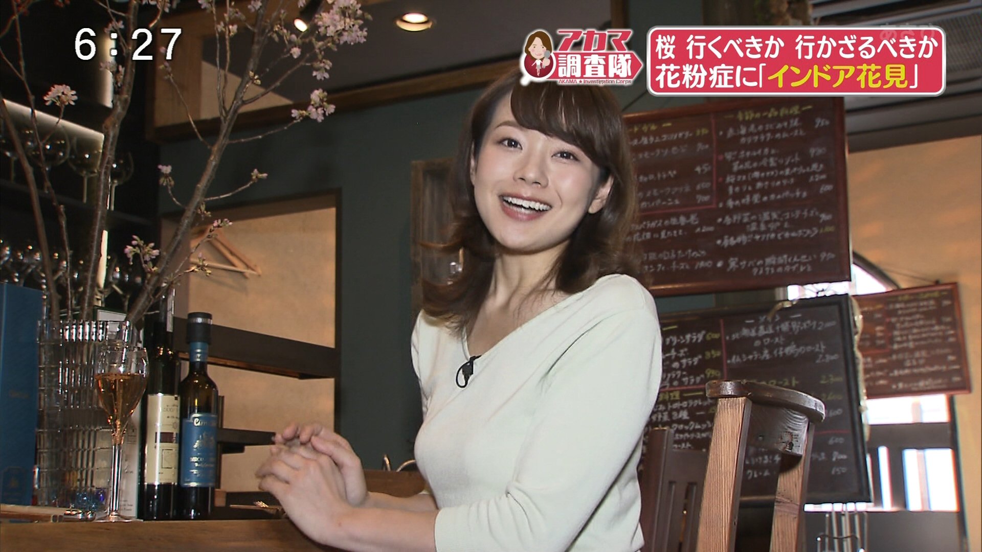 赤間優美子アナ セクシー! お花見横乳!