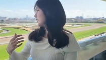 冨田有紀アナ ニットで胸元くっきり競馬告知!!【GIF動画あり】