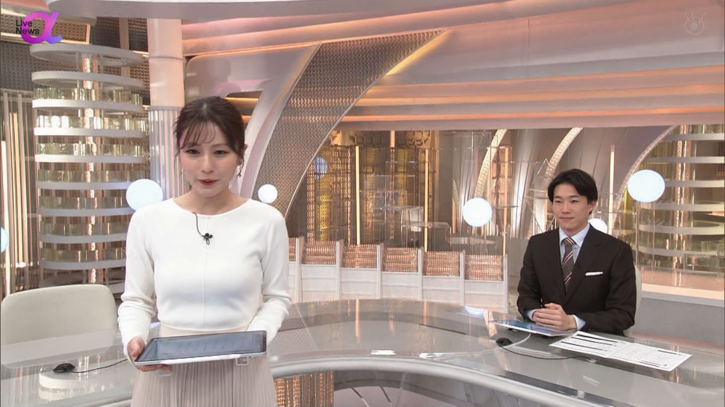 菊池柚花アナ ニットで胸元強調レポート!!